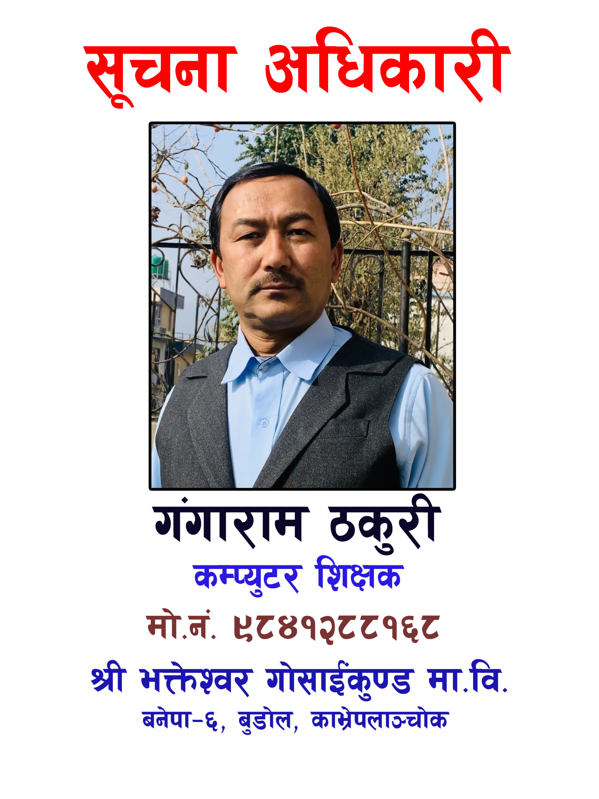 The surrounding area of the school is predominantly inhabited by the KC family, with some Newar and Brahmin families also residing there. Initially, the school was named after the local Bhakteshwor Mahadev temple. However, in 2081 B.S., the Shree Gosainkunda Basic School, located in the same ward, was merged with this school, and it is now operated under the name “Shree Bhakteshwor Gosainkunda Secondary School.”